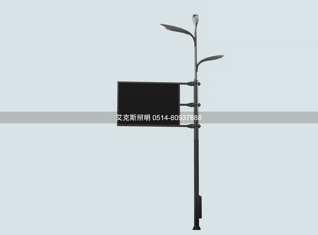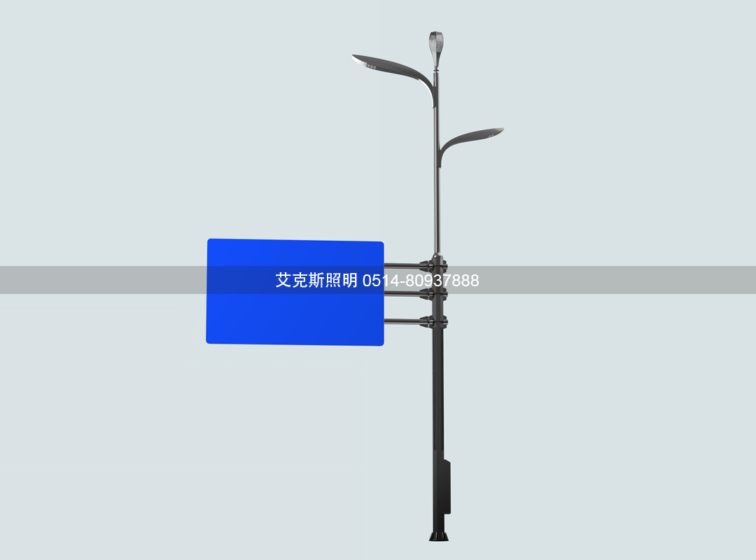 支持外掛LED顯示屏、 可變信息標(biāo)志和標(biāo)志牌。EFw監(jiān)控桿|標(biāo)志桿|信號(hào)燈桿|綜合桿|高桿燈|智慧路燈廠家-揚(yáng)州市艾克斯照明科技有限公司官網(wǎng)