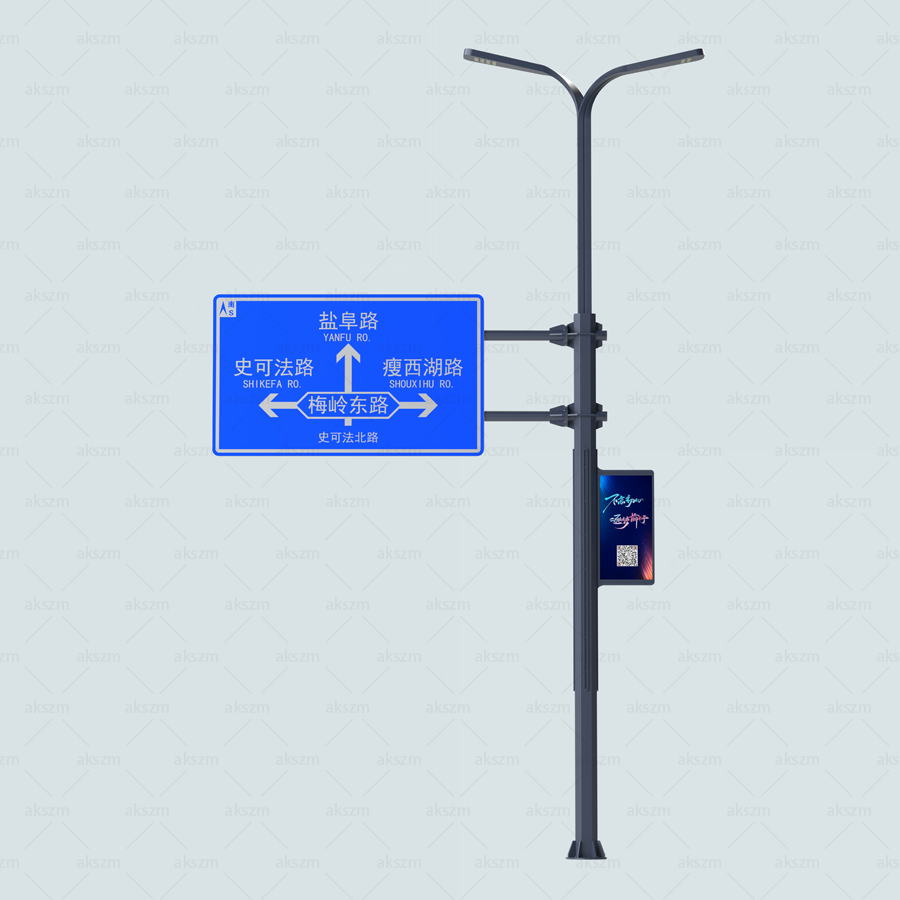 支持外掛LED顯示屏、 可變信息標(biāo)志和標(biāo)志牌。7J0監(jiān)控桿|標(biāo)志桿|信號(hào)燈桿|綜合桿|高桿燈|智慧路燈廠家-揚(yáng)州市艾克斯照明科技有限公司官網(wǎng)